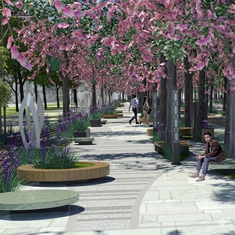 本次城市风貌提升中,我们以瑰丽田园为总体风貌意向,提炼出“佛教圣地、药王故里、铜川古瓷、红色照金、腾飞铜川”五大系列文化要素,以此为基础衍生形成规划涉及的六条主要街道的文化景观主题,配合街道功能空间梳理,同时借鉴传统园林、传统建筑中的代表性元素,结合不同主题进行了多样化的演化。