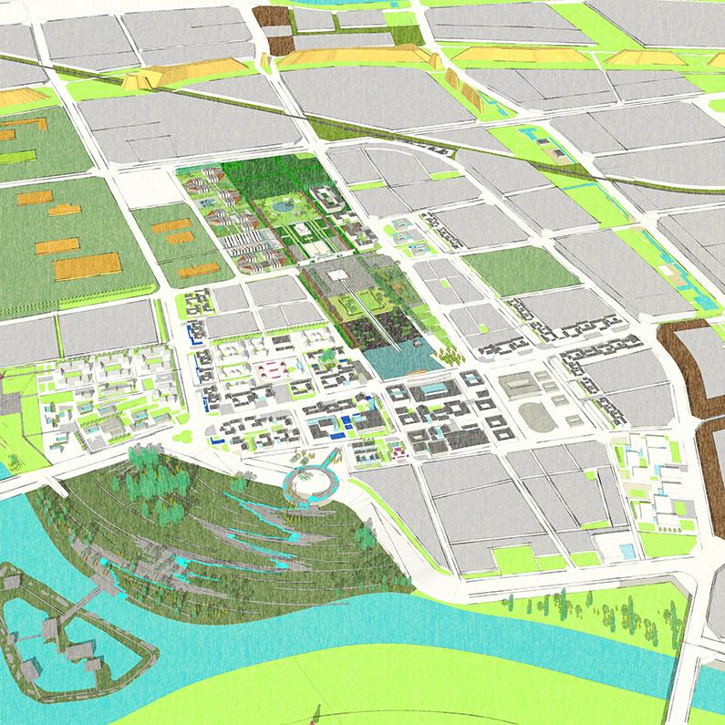 新郑黄帝故里位于中原历史区域核心,拥有黄帝文化这一中华文化之源,自上古时期,尤其是春秋郑韩时期留下的丰富历史遗存,以及两河夹高地为代表的历史山水关系和现状依然优良的生态品质。规划以黄帝故里广场为祖根和主源,西区依托丰富的历史文化遗存,强调“文化追溯”,东区将历史遗存充分融入城市现代生活,延续技艺与精神,活力与气质,融入城市手工业与商业活动中,突出“文化延续”,共同营造古今融合的时代氛围。