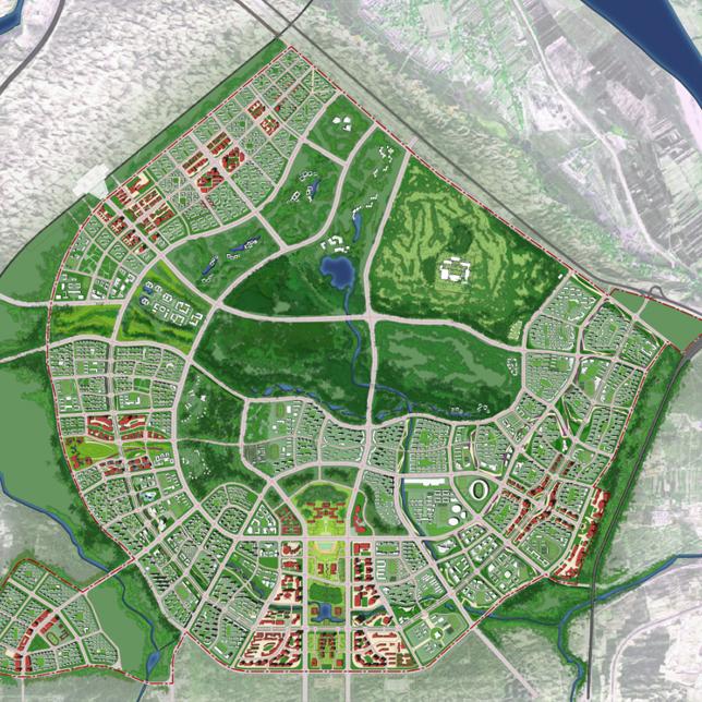 设计通过整体城市背景研究、空间格局设计、生态专项设计、主要城市界面与重点街道设计、色彩及夜景照明设计、重点片区详细导则设计等方式对大路新区的建设进行全面的引导和控制。总体结构上以“生态芯、活力环、风之谷”为主题, 以城中心多样化的生态本底为基石,构建多元特色的生态绿芯,并通过环形功能带,传接城市的绿色和活力;依托城市风向构建绿化谷廊及公共设施,成为城市开放空间的有机组成。