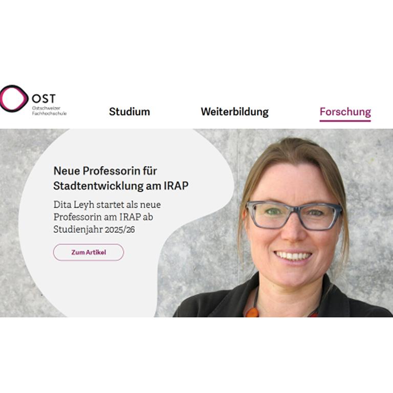 ISA合伙人Dita Leyh女士,于2025 年 9 月起出任瑞士东部应用科学大学(OST)空间发展研究所(IRAP)城市发展学教授。