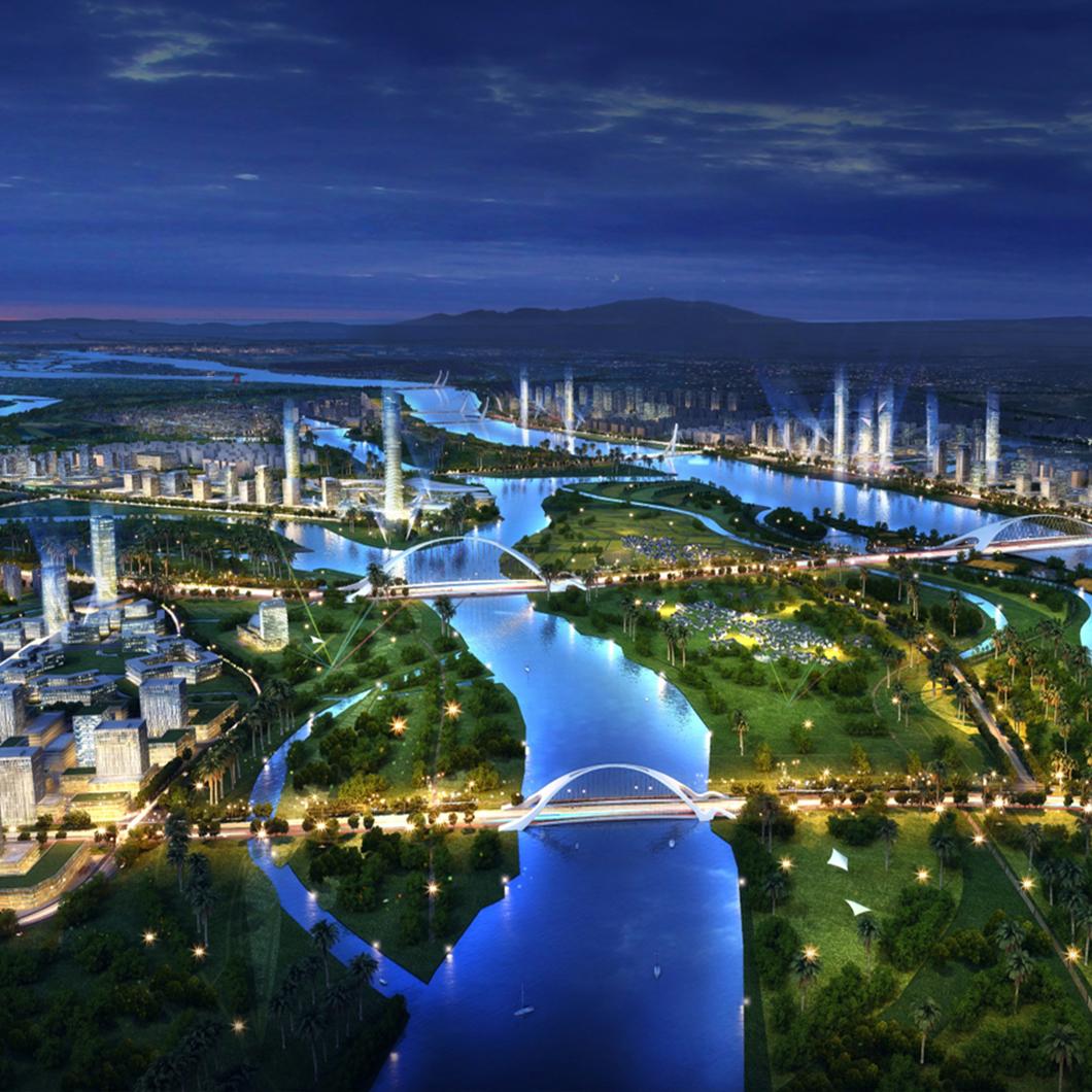 本次城市设计以创造“植根本地特色的全球化引力”为核心目标,利用区域资源,实现漳州与厦门大都市区域动力机制的三岸对接;利用地方性的生态资源和生活品质,围绕土地空间集聚的内陆发展模式,实现向拥抱河流、岛屿、田园的智慧田园滨水生活模式转变;利用岛屿的巨大力量,建设生态田园基底中的智慧共生岛屿聚落;按照中国现代山水人居生活模式,塑造现代中国山水人居梦想;利用个体组团的有效资源,塑造江海之间的五个复合型水城——智慧产业、优美地景、面海生活充分融合的都市岛群。