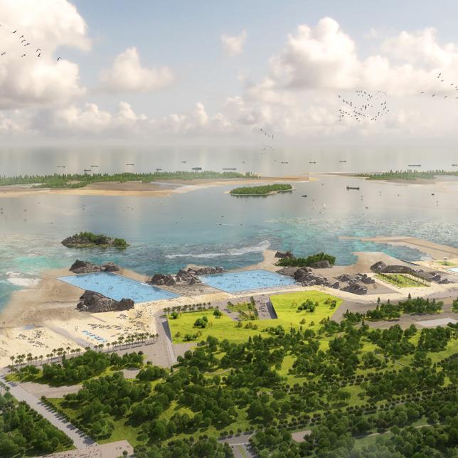 V型海岸带的生态空间方案,旨在联通上海与海洋,统筹历史演进、海流动力、海洋生态、产业、文化的多维价值,横向上自黄浦江“再出发”,引13港沿着城市发展断面自江达海;纵向上构建“Dune+Dike”“双D”海岸系统,将线性海堤转化为新的韧性海岸。横纵交织处,12个旗帜区域各具特色,“旌旗海岸”将成为上海V型海岸带享誉世界的新IP。