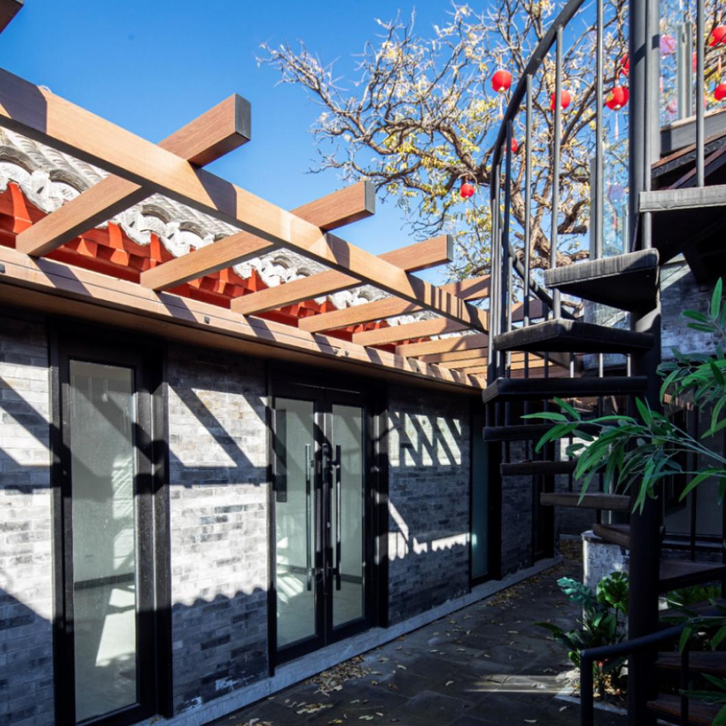 为了最大化利用院落空间,同时解锁胡同观景的全新视角,在院内增设了二层平台,以 “低影响、高适配”的设计,让平台与树荫形成奇妙互动,成为观赏胡同四季风光的绝佳去处。