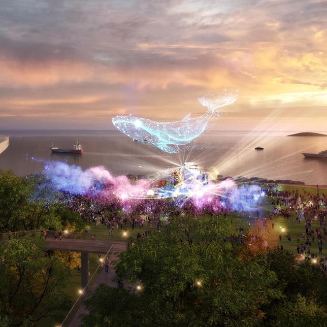 未来的上海V型海岸带,以“自然做功”融合“设计智慧”,将长江泥沙转化为生态重塑资产,工程防线转化为海洋生活前沿,构建一副富有活力的滨海画卷。