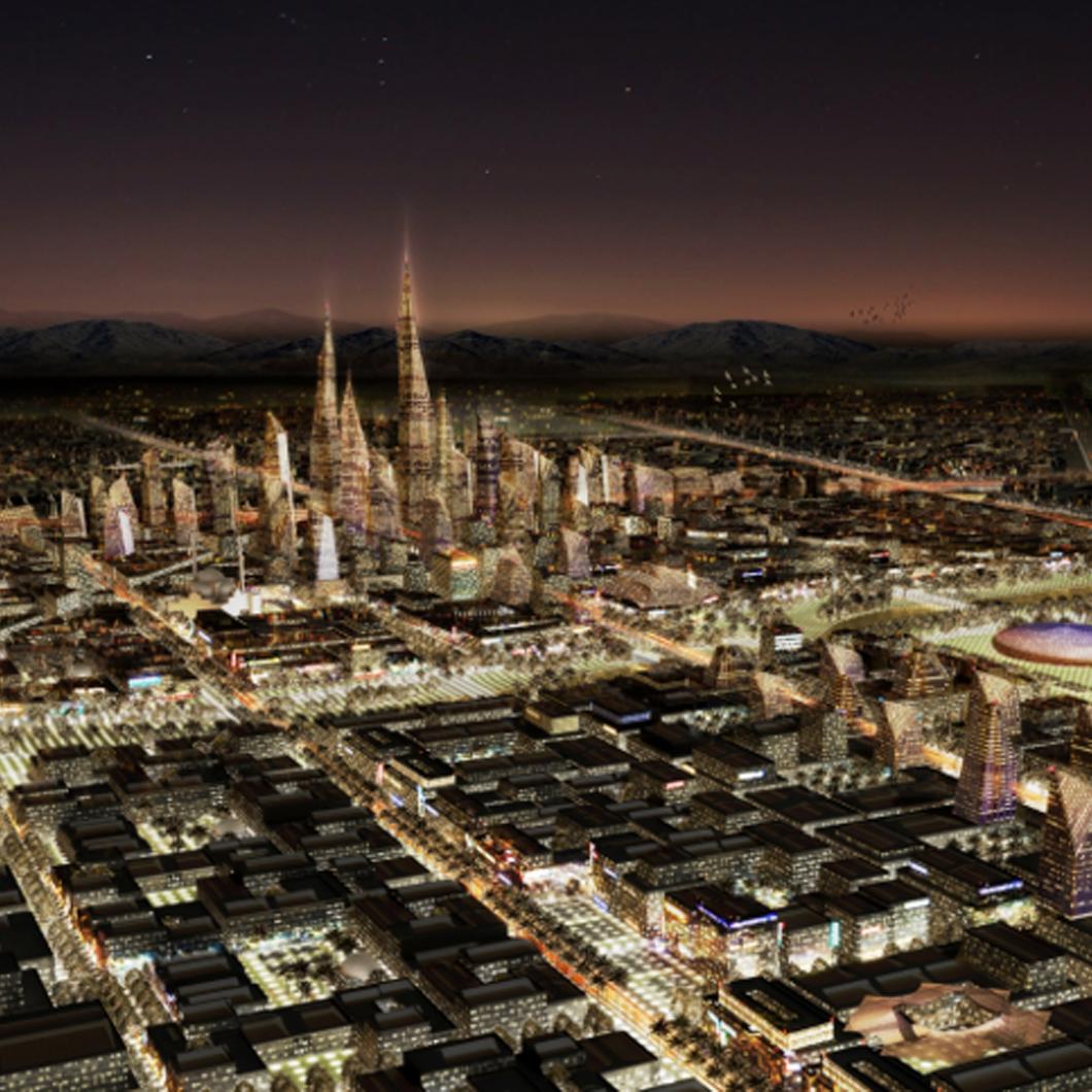 规划范围内既有的各类项目与片区,均将被整合纳入这一新的空间结构体系之中。整座新城定位为可持续发展的智慧型城市,三大城区板块之一被规划为太阳能示范城,将沙漠地区的传统建筑元素与现代技术有机融合。例如,建筑与商业区上方将架设遮阳棚膜,棚膜表面铺设柔性太阳能薄膜,在遮阳的同时发电,为制冷系统提供能源支持。